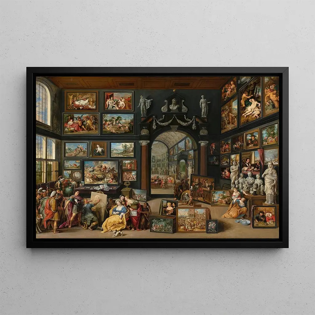 Apelle malujący Campaspe: scena ponadczasowego tworzenia W tym fascynującym dziele Apelle, słynny malarz starożytności, jest przedstawiony podczas malowania Campaspe, pięknej kurtyzany. Kompozycja jest bogata w szczegóły, z żywymi kolorami, które wywołują skojarzenia z pięknem i harmonią. Gra światła i cienia tworzy atmosferę zarówno intymną, jak i dynamiczną, zanurzając widza w procesie twórczym. Technika malarska, łącząca realizm i idealizację, podkreśla znaczenie sztuki w przedstawianiu ludzkiego piękna. Ta reprodukcja obrazu "Apelle malujący Campaspe" zachęca do refleksji nad sztuką i muzą, uchwycając moment czystej inspiracji. Willem van Haecht: świadek flamandzkiego renesansu Willem van Haecht, flamandzki malarz z XVII wieku, jest znany z dzieł celebrujących piękno sztuki i natury. Pod wpływem tradycji flamandzkiego malarstwa, potrafił wprowadzić elementy realizmu i symbolizmu do swoich prac. Działając w Antwerpii, przyczynił się do rozwoju malarstwa genre i scen mitologicznych. Jego dzieło "Apelle malujący Campaspe" jest emblemą jego stylu, łącząc finezję techniczną z głębią narracji. Poprzez tę reprodukcję dostrzega się znaczenie sztuki w kulturze jego epoki, gdzie artyści dążyli do uwiecznienia piękna we wszystkich jego formach. Dekoracyjny nabytek o wielu zaletach Ta reprodukcja obrazu "Apelle malujący Campaspe" to idealny wybór, aby wzbogacić swoje wnętrze. Niezależnie od tego, czy w salonie, biurze czy sypialni, dodaje elegancji i kultury. Jakość druku zapewnia niezwykłą wierną reprodukcję kolorów i szczegółów oryginalnego dzieła, pozwalając cieszyć się jego estetycznym urokiem. Wkomponowując tę płótno w swoją dekorację, nadajesz przestrzeni artystyczny wymiar, który wzbudza ciekawość i podziw. To element, który z pewnością przyciągnie spojrzenia i pobudzi rozmowy.