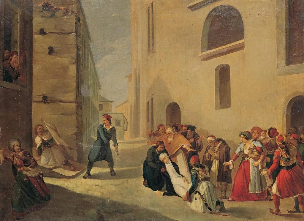 Dionysios Tsokos, peintre du 19ème siècle, est reconnu pour ses œuvres qui capturent des événements marquants de l'histoire grecque. Influencé par le romantisme, il s'est attaché à représenter des scènes historiques avec un réalisme saisissant. Tsokos a vécu une période de bouleversements politiques et sociaux en Grèce, ce qui a profondément influencé son travail. Ses œuvres, souvent empreintes de patriotisme, témoignent d'une volonté de préserver la mémoire collective de son pays. En choisissant de peindre des moments clés comme l'assassinat de Capodistria, il contribue à forger l'identité nationale à travers l'art.