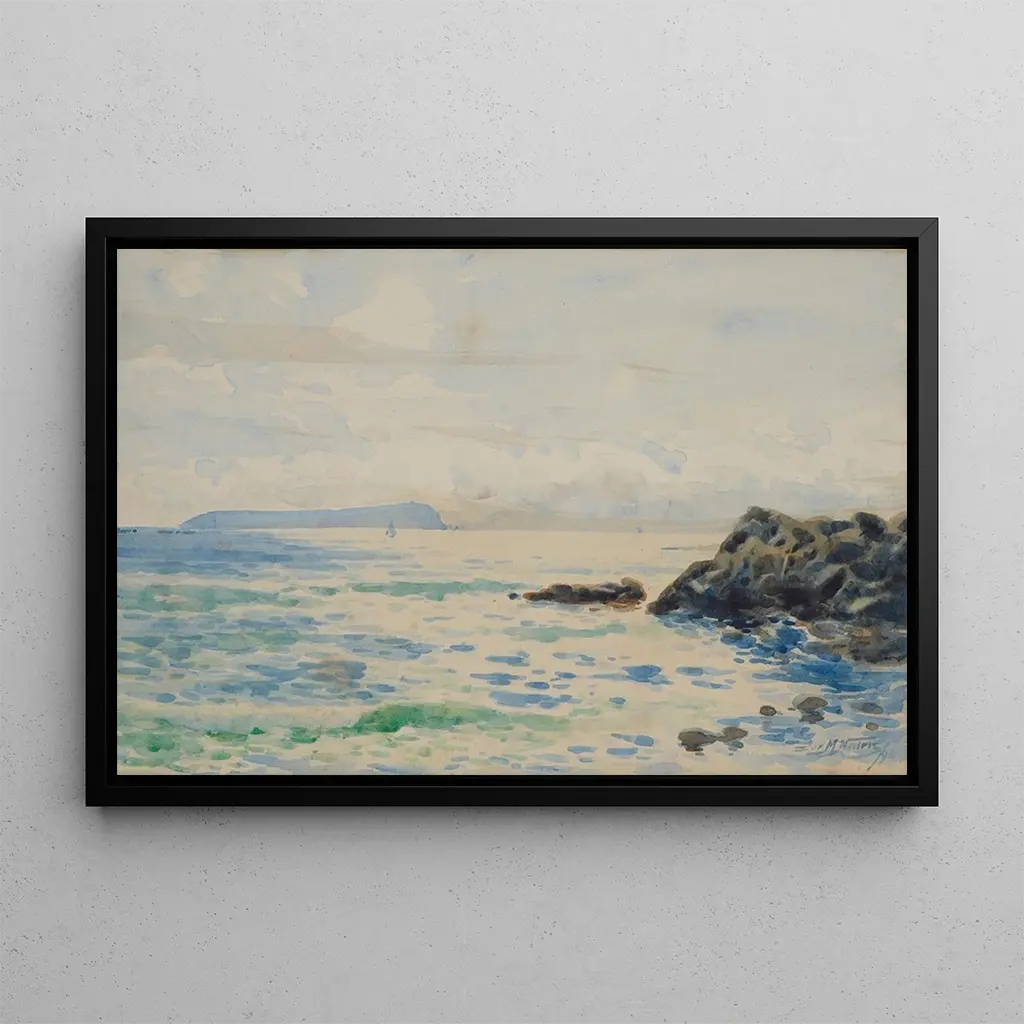 La reproduction du tableau "Baie de Titahi" de James Nairn nous plonge dans un paysage côtier d'une beauté saisissante. Les nuances de bleu et de vert évoquent les eaux tranquilles de la baie, tandis que les touches de lumière dorée illuminent le ciel, créant une atmosphère de sérénité et d'évasion. La technique impressionniste de Nairn se manifeste à travers des coups de pinceau audacieux, qui donnent vie aux vagues et aux reflets sur l'eau. Cette œuvre invite à une contemplation méditative, où l'on peut presque sentir la brise marine sur son visage.