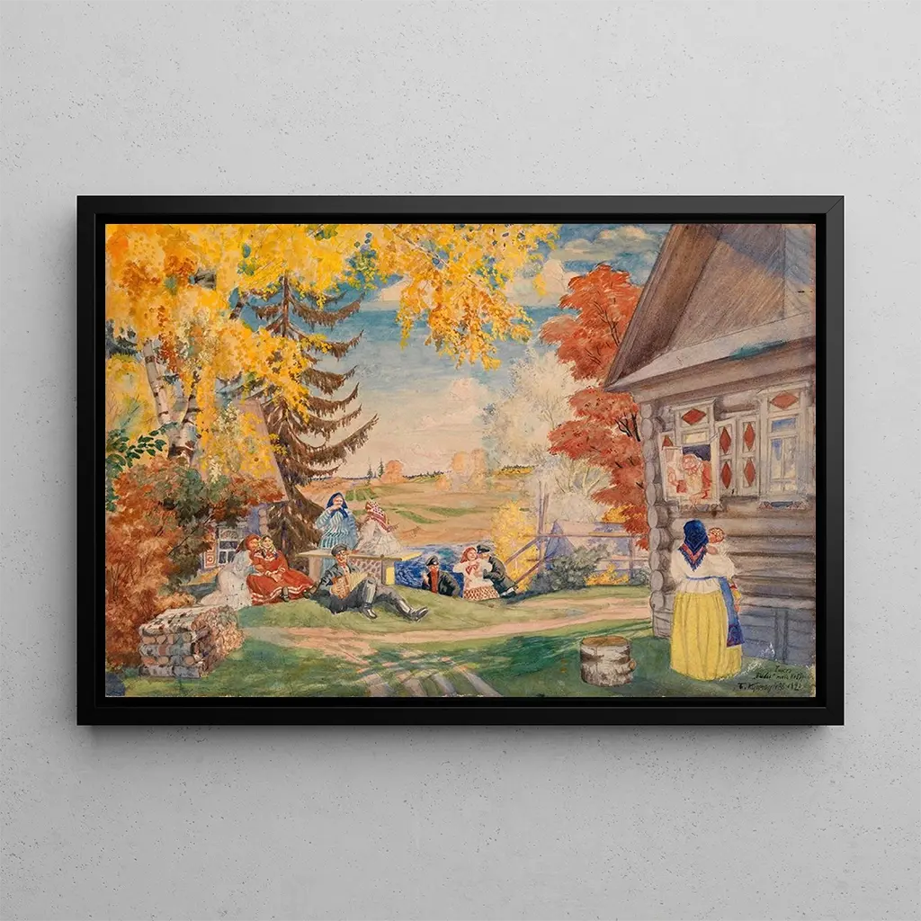 Boris Kustodiev, aktywny na początku XX wieku, jest jednym z najważniejszych artystów sceny artystycznej Rosji. Jego styl, inspirowany realizmem i symbolizmem, uchwyca istotę rosyjskiej kultury i życia. Kustodiev często eksplorował tematy związane z życiem wiejskim, podkreślając tradycje i zwyczaje swojego kraju. Druk artystyczny Paysannes Neverov wpisuje się w tę działalność, świadcząc o miłości artysty do swojego narodu i ziemi. Jego dzieło jest lustrem rosyjskiego społeczeństwa tamtych czasów, pełnym emocji i kolorów.