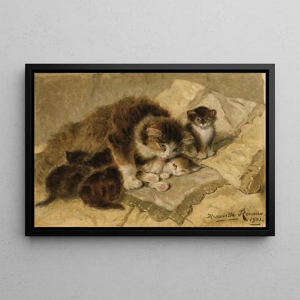 Henriette Ronner-Knip, aktywna w XIX wieku, jest szczególnie znana z przedstawień kotów i scen domowych. Wychowana w środowisku artystycznym, była pod wpływem wielkich mistrzów swojego czasu i potrafiła wypracować unikalny styl, łączący realizm z wrażliwością. Jej zdolność do uchwycenia codziennych momentów życia, zwłaszcza tych związanych z macierzyństwem i naturą, przyniosła jej międzynarodowe uznanie. "Fierté de mère" doskonale ilustruje jej talent do wywoływania emocji poprzez proste, lecz potężne kompozycje, czyniąc ją nieodłączną postacią swojego okresu.