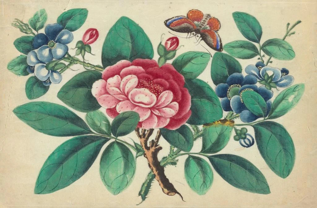 Wielki Czerwony Kwiat, Niebieskie Kwiaty, Motyl - Anonim