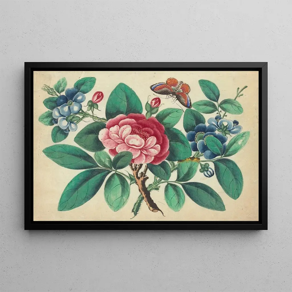 Druk artystyczny "Grande Fleur Rouge, Fleurs Bleues, Papillon" to dzieło, które przyciąga uwagę swoją żywą paletą barw i harmonijną kompozycją. Kwiaty, emanujące intensywnością kolorów, zdają się niemal tańczyć w świetle, podczas gdy motyl, delikatny i pełen gracji, dodaje całości lekkości. Nieznany artysta potrafił uchwycić efemeryczną piękność natury, tworząc radosną i spokojną atmosferę. Ta płótno zachęca do kontemplacji, oferując chwilę wytchnienia od zgiełku codzienności.