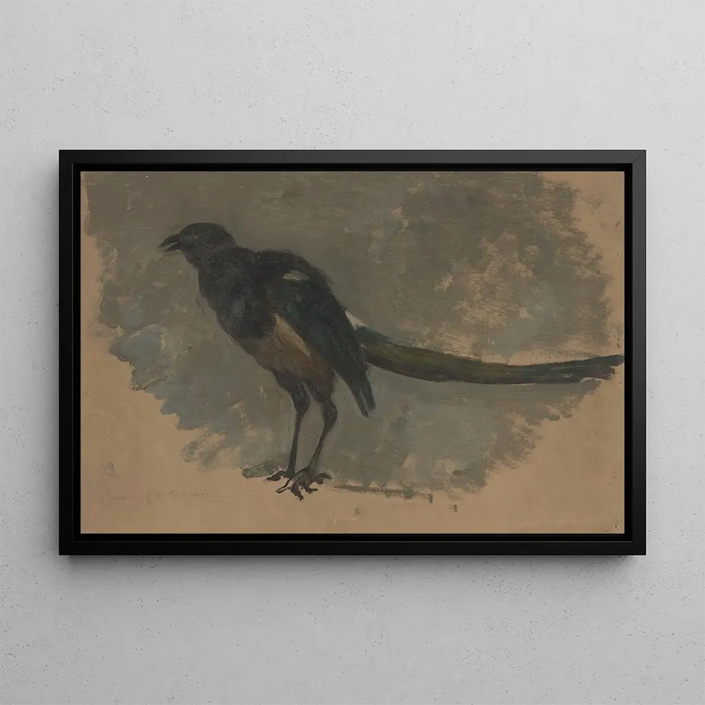Étude d'une pie : une exploration de la nature en plein détail L'œuvre "Étude d'une pie" d'August Allebé se distingue par sa représentation minutieuse et réaliste de cet oiseau. Les couleurs vives et les nuances délicates de noir et blanc capturent la lumière de manière magistrale, créant une atmosphère à la fois vivante et sereine. La composition met en avant la pie dans un cadre naturel, où chaque plume semble vibrer sous le regard attentif de l'artiste. La technique de l'huile sur toile permet une profondeur et une texture qui rendent cette reproduction particulièrement attrayante pour les amateurs d'art et de nature. August Allebé : un maître du réalisme animalier August Allebé, peintre néerlandais du XIXe siècle, est reconnu pour ses œuvres qui célèbrent la faune et la flore. Influencé par le mouvement réaliste, il a su capturer la beauté de la nature avec une précision remarquable. Ses études d'animaux, comme celle de la pie, témoignent d'une observation minutieuse et d'une passion pour le monde naturel. Allebé a également été influencé par ses contemporains, ce qui a enrichi son style et lui a permis de se faire une place dans le paysage artistique de son époque. Son héritage perdure à travers ses œuvres, qui continuent d'inspirer et d'émerveiller. Une acquisition décorative aux multiples atouts La reproduction de "Étude d'une pie" est une pièce décorative idéale pour divers espaces, que ce soit dans un salon, un bureau ou une chambre. Sa qualité d'impression et sa fidélité à l'œuvre originale en font un choix parfait pour ceux qui souhaitent ajouter une touche de nature à leur intérieur. L'attrait esthétique de cette toile réside dans sa capacité à susciter la contemplation et à apporter une atmosphère paisible à votre décoration. En choisissant cette reproduction, vous optez pour une œuvre qui allie beauté, nature et art, enrichissant ainsi votre environnement quotidien.