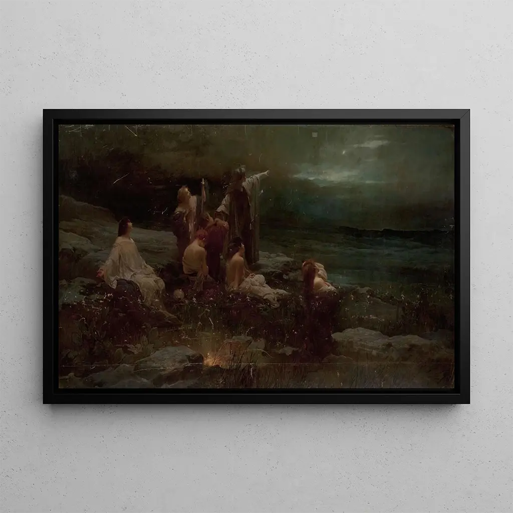 Druk artystyczny "Étoile du matin" autorstwa Franciszka Żmurko jest prawdziwą hołdem dla piękna wschodu słońca. Kompozycja, zanurzona w złotych i pastelowych odcieniach, wywołuje spokojną i poetycką atmosferę. Delikatne szczegóły postaci oraz gra światła, która rozświetla niebo, tworzą uczucie zachwytu. Technika Żmurko, łącząca realizm z romantyzmem, zaprasza widza do zanurzenia się w świecie, gdzie natura i ludzkość spotykają się w harmonii. Każdy pociągnięcie pędzla wydaje się uchwycić istotę samego świtu, oferując fascynujące wrażenia wizualne.