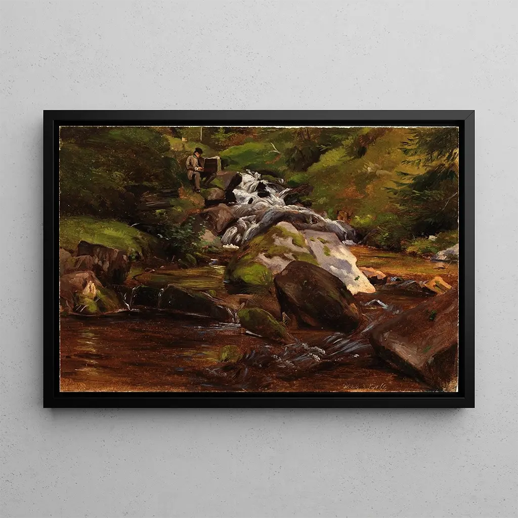 W tej reprodukcji Hans Thoma, strumień leśny ukazuje się jak żywe dzieło sztuki. Zielone i brązowe odcienie harmonijnie się łączą, przywołując świeżość porannego dnia na łonie natury. Technika olejna na płótnie pozwala uchwycić światło przenikające przez liście, tworząc spokojną i kontemplacyjną atmosferę. Drobne szczegóły drzew i odbicia w wodzie zachęcają widza do zanurzenia się w tym idyllicznym krajobrazie, gdzie każdy element zdaje się opowiadać historię pokoju i spokoju.