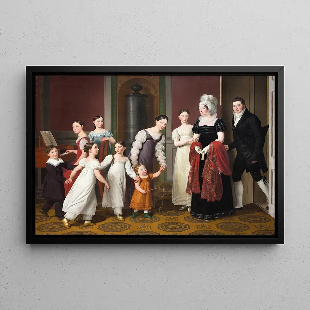 Dans "La Famille Nathanson", Christoffer Wilhelm Eckersberg dépeint une scène familiale empreinte de douceur et de complicité. Les membres de la famille sont réunis dans un cadre chaleureux, où chaque détail, des expressions des visages aux vêtements, témoigne de l'harmonie qui règne entre eux. Les couleurs pastel et la lumière douce créent une atmosphère apaisante, invitant le spectateur à partager ce moment d'intimité. La composition équilibrée, centrée sur les interactions, permet de ressentir la chaleur des liens familiaux. Cette reproduction du tableau "La Famille Nathanson" est une célébration de l'amour et de la convivialité.