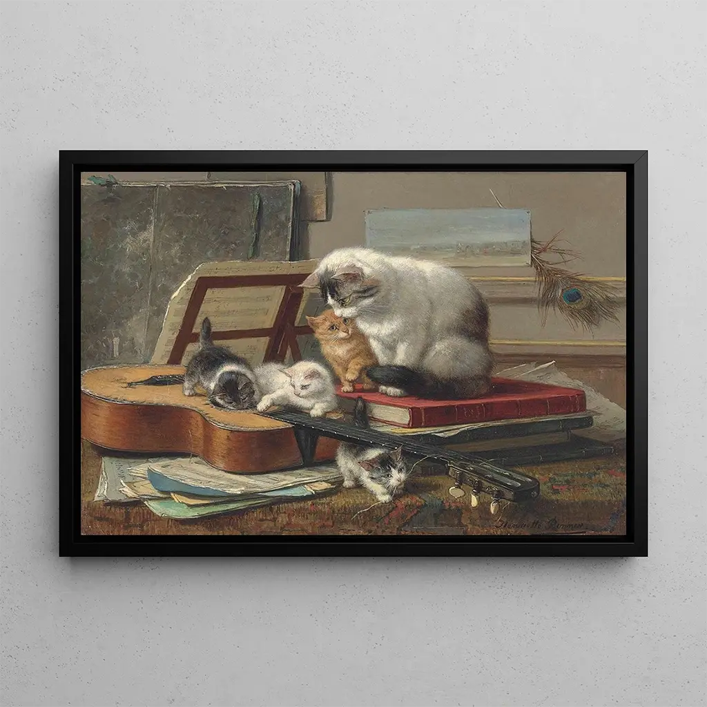 Henriette Ronner-Knip, urodzona w 1821 roku w Amsterdamie, jest holenderską artystką znaną z delikatnych przedstawień życia domowego i zwierząt. Pod wpływem ruchu artystycznego XIX wieku, potrafiła wywalczyć sobie miejsce w świecie zdominowanym przez mężczyzn. Jej kariera, trwająca kilka dekad, charakteryzuje się unikalnym stylem łączącym finezję i realizm, co pozwoliło jej stać się ważną postacią swojego czasu. Lekcja muzyki doskonale ilustruje jej talent do uchwycenia chwil życia pełnych emocji, jednocześnie podkreślając jej miłość do muzyki i harmonii.