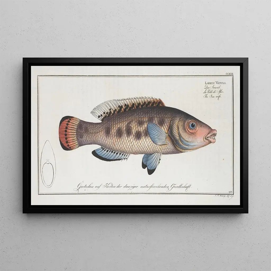Labrus Vetula, la Seawife : une plongée dans la biodiversité marine La toile "Labrus Vetula, la Seawife" de Marcus Elieser Bloch offre une représentation fascinante de la vie marine, mettant en avant la beauté et la diversité des espèces aquatiques. Les couleurs vives et détaillées de ce poisson, avec ses nuances de vert et de bleu, capturent l'œil et évoquent les profondeurs marines. La technique précise de Bloch, qui allie réalisme et esthétique, permet de rendre hommage à la richesse de la faune sous-marine. Ce tableau est une véritable invitation à explorer les mystères de l'océan et à apprécier la délicatesse de ses habitants. Marcus Elieser Bloch : un pionnier de l'illustration zoologique Marcus Elieser Bloch, actif au XVIIIe siècle, est reconnu pour ses contributions à l'illustration zoologique, notamment dans le domaine de l'ichtyologie. Son ouvrage majeur, "Naturgeschichte der ausländischen Fische", a marqué un tournant dans la représentation des poissons, alliant science et art. Influencé par les découvertes de son époque, Bloch a su capturer avec précision les caractéristiques des espèces marines, tout en leur conférant une dimension artistique. Son travail a non seulement enrichi la connaissance scientifique, mais a également inspiré de nombreux artistes et naturalistes à travers les âges. Une acquisition décorative aux multiples atouts La reproduction de "Labrus Vetula, la Seawife" est un ajout captivant à toute décoration intérieure, qu'il s'agisse d'un bureau, d'une salle de jeux ou d'une salle de bain. Sa qualité de reproduction assure une fidélité à l'œuvre originale, permettant d'apprécier la beauté des détails de ce poisson. Avec son attrait esthétique, cette toile apporte une touche marine et vivante à votre espace, tout en éveillant la curiosité sur la biodiversité. En intégrant ce tableau dans votre décoration, vous créez un environnement inspirant et éducatif, célébrant la beauté de la nature.