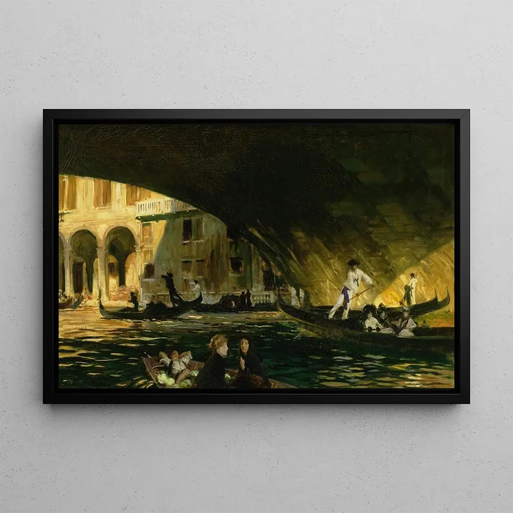 John Singer Sargent, urodzony w 1856 roku, jest amerykańskim malarzem o włoskich korzeniach, cenionym za wyjątkowy talent w portrecie i pejzażu. Pod wpływem europejskich mistrzów, Sargent wypracował unikalny styl łączący realizm i impresjonizm. Jego kariera, obejmująca koniec XIX i początek XX wieku, jest pełna ikonicznych dzieł, które świadczą o jego umiejętności uchwycenia światła i ruchu. "Le Rialto" wpisuje się w okres, gdy Sargent badał życie miejskie, ukazując swoje zainteresowanie scenami codziennego życia i interakcjami międzyludzkimi.