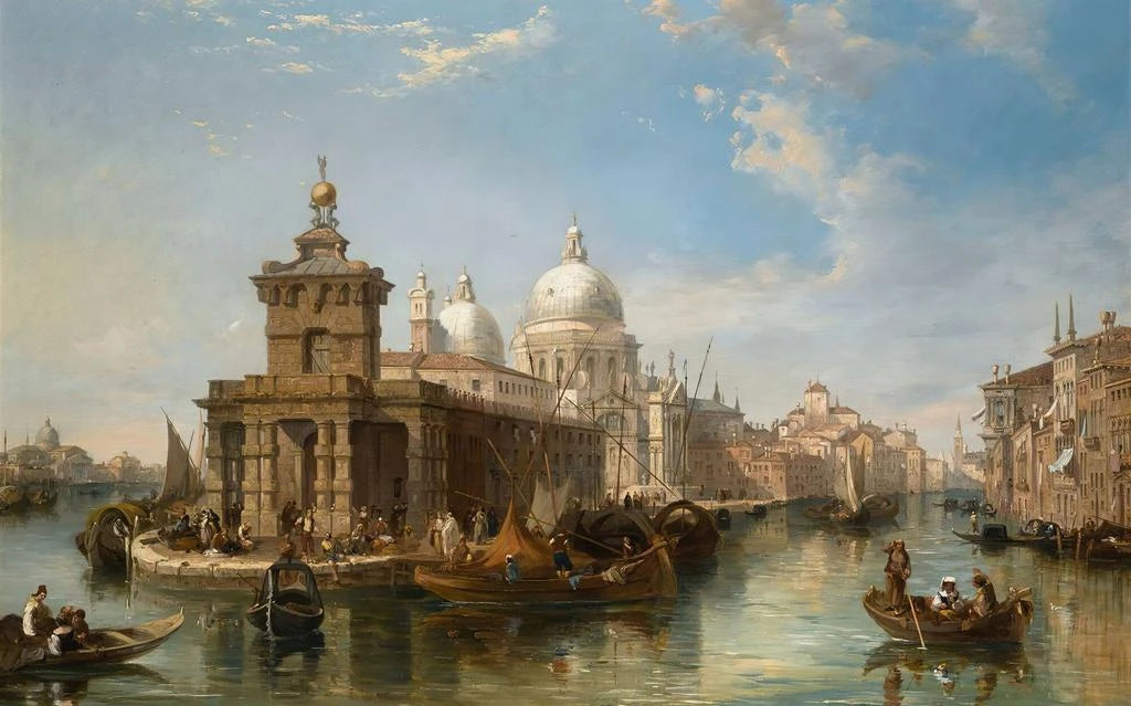 Edward Pritchett, peintre britannique du XIXe siècle, est connu pour ses représentations de paysages européens, en particulier ceux de l'Italie. Influencé par le mouvement romantique, il a su capturer la beauté des lieux avec une sensibilité unique. Sa carrière a été marquée par des voyages à travers l'Europe, où il a puisé son inspiration dans la lumière et les couleurs des paysages. L'Église de la Salute, réalisée lors de son séjour à Venise, témoigne de son habileté à immortaliser des scènes emblématiques tout en y insufflant une atmosphère de rêve. Pritchett a su, par son art, faire découvrir la beauté intemporelle de l'architecture et des paysages européens.