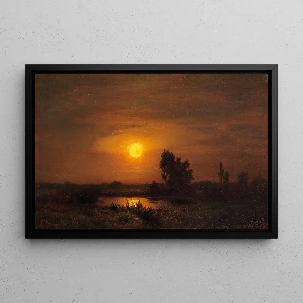 Louis Douzette, actif au XIXe siècle, est reconnu pour ses paysages poétiques et ses scènes de la vie quotidienne. Influencé par le mouvement impressionniste, il s'est spécialisé dans la capture des effets de lumière et des atmosphères changeantes. Lever de lune sur l'étang illustre parfaitement son talent pour représenter la nature dans toute sa splendeur. À une époque où l'art se libère des conventions académiques, Douzette se démarque par sa capacité à évoquer des émotions à travers des paysages simples mais évocateurs. Son œuvre continue d'être célébrée pour sa beauté et sa sensibilité.