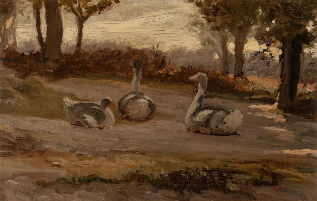 Elihu Vedder, aktywny pod koniec XIX wieku, jest amerykańskim artystą, którego prace wpisują się w ruch symbolistyczny. Pod wpływem poezji i mitologii, Vedder potrafił uchwycić chwile efemerycznej piękności i tajemnicy. Jego kariera była naznaczona podróżami po Europie, gdzie miał okazję obcować z wielkimi mistrzami malarstwa, co wzbogaciło jego unikalny styl. Vedder jest również znany z fresków i ilustracji, ale to w przedstawieniach natury znajduje prawdziwą rezonans, co potwierdza ta reprodukcja gęsi.