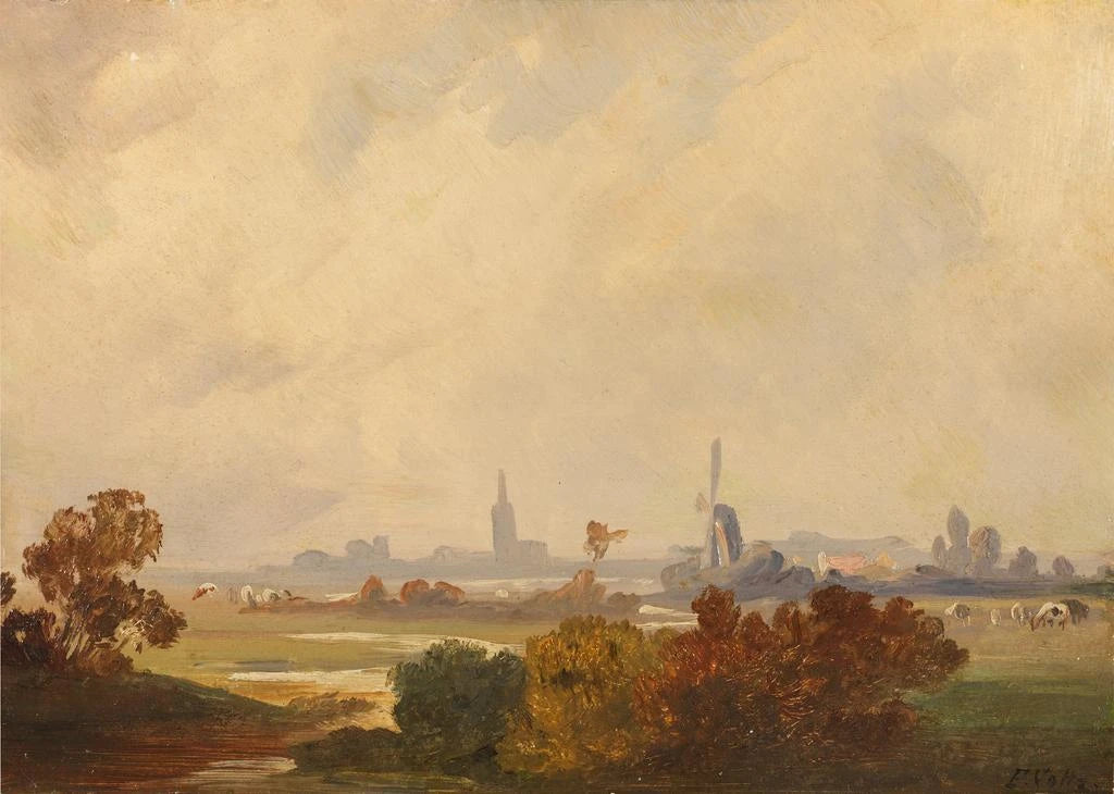 Friedrich Voltz, actif au XIXe siècle, est reconnu pour son talent à représenter des paysages empreints de poésie. Influencé par le mouvement romantique, il s'est consacré à la peinture de la nature, cherchant à exprimer l'émotion humaine à travers ses œuvres. Son style se caractérise par une attention minutieuse aux détails et une utilisation subtile de la lumière. Voltz a su capturer des scènes de la vie quotidienne, tout en intégrant des éléments de la nature qui reflètent l'harmonie entre l'homme et son environnement. Son héritage perdure, inspirant de nombreux artistes contemporains à explorer la beauté des paysages.