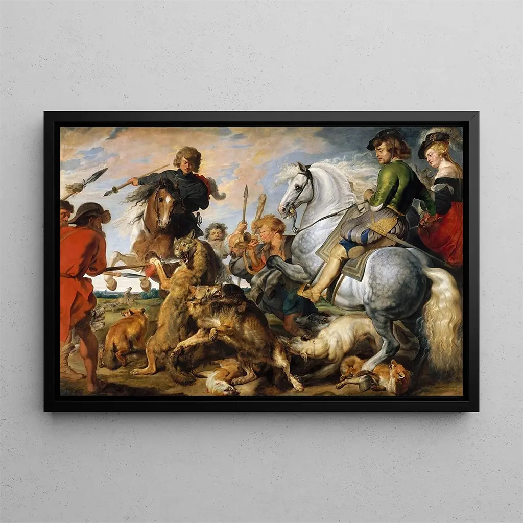 La druk artystyczny de Chasse au loup et au renard nous entraîne dans une scène animée, où la nature sauvage est mise en lumière par l'artiste Peter Paul Rubens. Les couleurs éclatantes et les mouvements dynamiques des animaux et des chasseurs créent une atmosphère de tension et d'excitation. Rubens, connu pour sa maîtrise du mouvement, capture l'énergie de la chasse avec une précision remarquable. Les détails des animaux, des cavaliers et du paysage environnant s'entrelacent, offrant une vision vivante d'une scène emblématique de la vie rurale au XVIIe siècle. Ce tableau évoque la beauté et la brutalité de la nature, invitant à une contemplation de l'harmonie entre l'homme et son environnement.