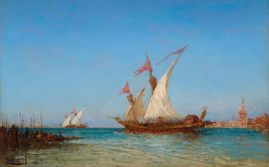 Dans cette œuvre emblématique, Félix Ziem capture l'essence même de Venise, où les voiles blanches des bateaux dansent sur l'eau scintillante. Les couleurs vibrantes, allant des bleus profonds aux jaunes éclatants, créent une atmosphère vivante et joyeuse. La technique de Ziem, mêlant huile et pinceau délicat, donne vie à chaque reflet sur la surface de l'eau. Les spectateurs sont invités à plonger dans ce tableau, à ressentir la brise légère et à admirer le spectacle des régates, un véritable hommage à la beauté de la lagune vénitienne.