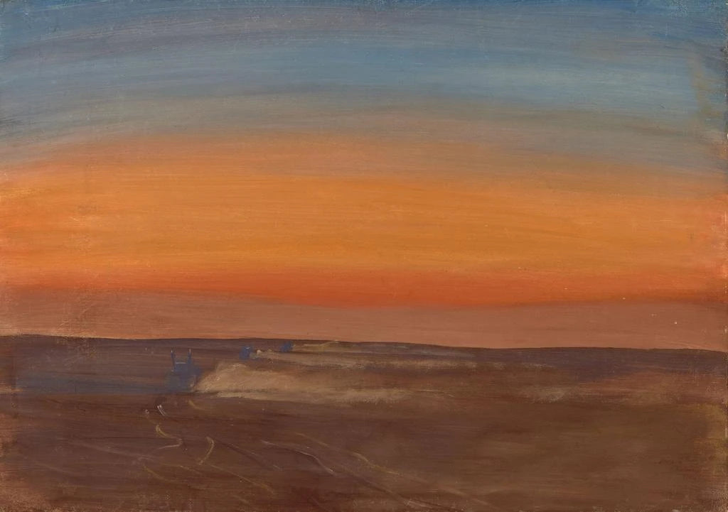 "Les autos dans le désert" d'Alexandre Iacovleff est une œuvre qui évoque la liberté et l'aventure à travers un paysage aride et vaste. Les véhicules, représentés avec un dynamisme saisissant, semblent traverser un océan de sable, tandis que les couleurs chaudes du désert contrastent avec les teintes métalliques des voitures. La technique de l'artiste, mêlant réalisme et impressionnisme, crée une atmosphère à la fois nostalgique et moderne. Iacovleff réussit à capturer le mouvement, rendant chaque auto presque vivante, comme si elle était en pleine course à travers le paysage désertique.