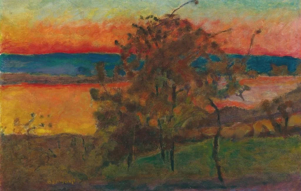 Pierre Bonnard, figure emblématique du post-impressionnisme, a su capturer la beauté des moments quotidiens avec une sensibilité unique. Né en 1867, il a été influencé par des artistes tels que Édouard Vuillard et Paul Gauguin, intégrant des éléments de la peinture symboliste dans son œuvre. Son style se distingue par l'utilisation audacieuse de la couleur et la recherche de la lumière, transformant des scènes ordinaires en expériences visuelles poétiques. Bonnard a également exploré la vie domestique, mettant en avant des intérieurs et des paysages, ce qui lui a permis de créer un univers intimiste et personnel. Sa contribution à l'art moderne est indéniable, et "Soleil couchant" en est un parfait exemple.