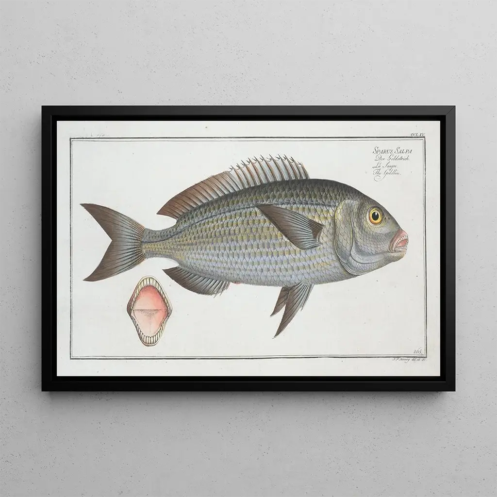 Sparus Salpa Le Goldlin : une ode à la vie marine La reproduction de "Sparus Salpa Le Goldlin" de Marcus Elieser Bloch est une véritable célébration de la biodiversité marine. Ce tableau naturaliste, qui représente le sparus salpa, met en avant la beauté et la délicatesse de ce poisson aux couleurs éclatantes. Les détails minutieux de la représentation, allant des écailles scintillantes aux reflets de la lumière sur l'eau, témoignent de l'habileté de l'artiste. Bloch, en utilisant des techniques de gravure et de peinture, parvient à capturer l'essence même de la vie aquatique, invitant le spectateur à plonger dans un univers sous-marin fascinant et mystérieux. Marcus Elieser Bloch : pionnier de l'ichthyologie artistique Marcus Elieser Bloch, naturaliste et artiste allemand du XVIIIe siècle, est souvent considéré comme l'un des pionniers de l'ichthyologie, l'étude des poissons. Sa passion pour la nature l'a conduit à réaliser des œuvres qui allient science et art, comme "Sparus Salpa Le Goldlin". Bloch a voyagé à travers l'Europe et au-delà pour étudier et représenter les différentes espèces de poissons, contribuant ainsi à la connaissance scientifique de son époque. Son approche méticuleuse et son souci du détail font de ses œuvres des références incontournables pour les amateurs de biologie marine et d'art. L'importance de son travail réside dans sa capacité à allier esthétique et savoir. Une acquisition décorative aux multiples atouts Choisir une reproduction de "Sparus Salpa Le Goldlin" pour votre intérieur est une excellente manière d'apporter une touche de nature et d'élégance. Que ce soit dans un bureau, une salle à manger ou une chambre, cette toile saura captiver l'attention de vos invités et enrichir votre décoration. La qualité de la reproduction garantit une fidélité aux couleurs et aux détails de l'œuvre originale, permettant de profiter pleinement de son charme. Avec son attrait esthétique et son histoire scientifique, cette œuvre devient un élément décoratif qui stimule la curiosité et l'émerveillement, transformant votre espace en un véritable sanctuaire de la nature.