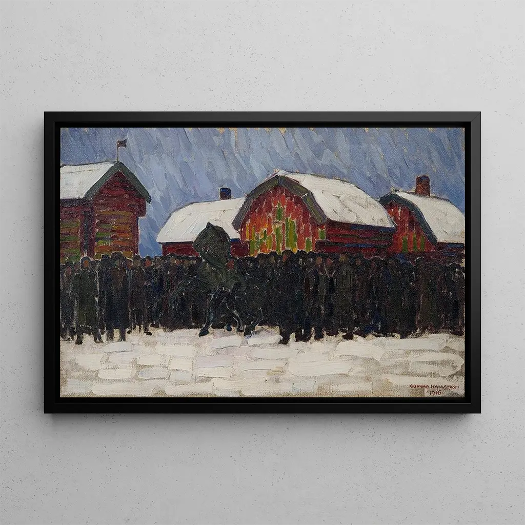Sprzedaż koni: ożywiona dynamika rynku. Druk artystyczny obrazu "Vente de chevaux" autorstwa Gunnara Hallströma ukazuje pełną życia i energiczną scenę, w której energia koni i kupujących miesza się w wiejskim otoczeniu. Żywe kolory i drobiazgowe detale zwierząt oddają istotę transakcji, czyniąc odczuwalnym emocje tego momentu. Hallström, dzięki mistrzowskiemu posługiwaniu się światłem i cieniem, potrafi stworzyć żywą atmosferę, w której każda postać zdaje się ożywać. Dzieło zachęca do podziwiania nie tylko piękna koni, ale także znaczenia hodowli i handlu w społeczeństwie jego epoki. Gunnar Hallström: artysta głęboko zakorzeniony w tradycji jeździeckiej. Gunnar Hallström, szwedzki malarz początku XX wieku, jest znany z dzieł celebrujących relację między człowiekiem a koniem. Pod wpływem impresjonizmu, Hallström potrafił oddać dynamikę scen jeździeckich z unikalną wrażliwością. Jego kariera, choć stosunkowo krótka, pozostawiła znaczący ślad w świecie sztuki, szczególnie dzięki realistycznym i poetyckim przedstawieniom koni. Wpisując się w tradycję malarzy zwierząt, Hallström przyczynił się do podkreślenia roli tych zwierząt w kulturze i gospodarce swojego czasu. Dekoracyjny druk artystyczny o wielu zaletach. Druk artystyczny obrazu "Vente de chevaux" to doskonały wybór do ozdoby wnętrza, niezależnie od tego, czy jest to salon, biuro czy sala rekreacyjna. Jakość druku zapewnia niezwykłą wierne oddanie szczegółów oryginalnego dzieła, jednocześnie dodając dynamizmu Twojej dekoracji. Estetyczna atrakcyjność tej reprodukcji tkwi w jej zdolności do przyciągania wzroku i wywoływania emocji, przemieniając każde miejsce w przestrzeń wymiany i towarzyskiego spotkania. Wprowadzając to dzieło do swojego wystroju, dodajesz element historii i kultury, który z pewnością oczaruje Twoich gości.