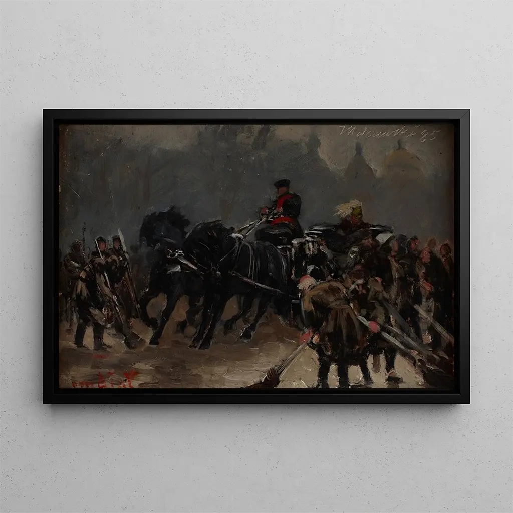 Druk artystyczny "Voici venir le tsar" stanowi cenny dodatek do każdej kolekcji sztuki. Niezależnie od tego, czy jest umieszczony w biurze, salonie czy galerii, przyciąga wzrok i wywołuje rozmowy. Jakość reprodukcji zapewnia wierne odwzorowanie żywych kolorów i szczegółów z oryginalnego dzieła, oferując wzbogacające doświadczenie wizualne. Wkomponowując ten obraz w swoją dekorację, wprowadzasz nie tylko artystyczny akcent, ale także kawałek historii i polskiej kultury do swojej przestrzeni życiowej.
