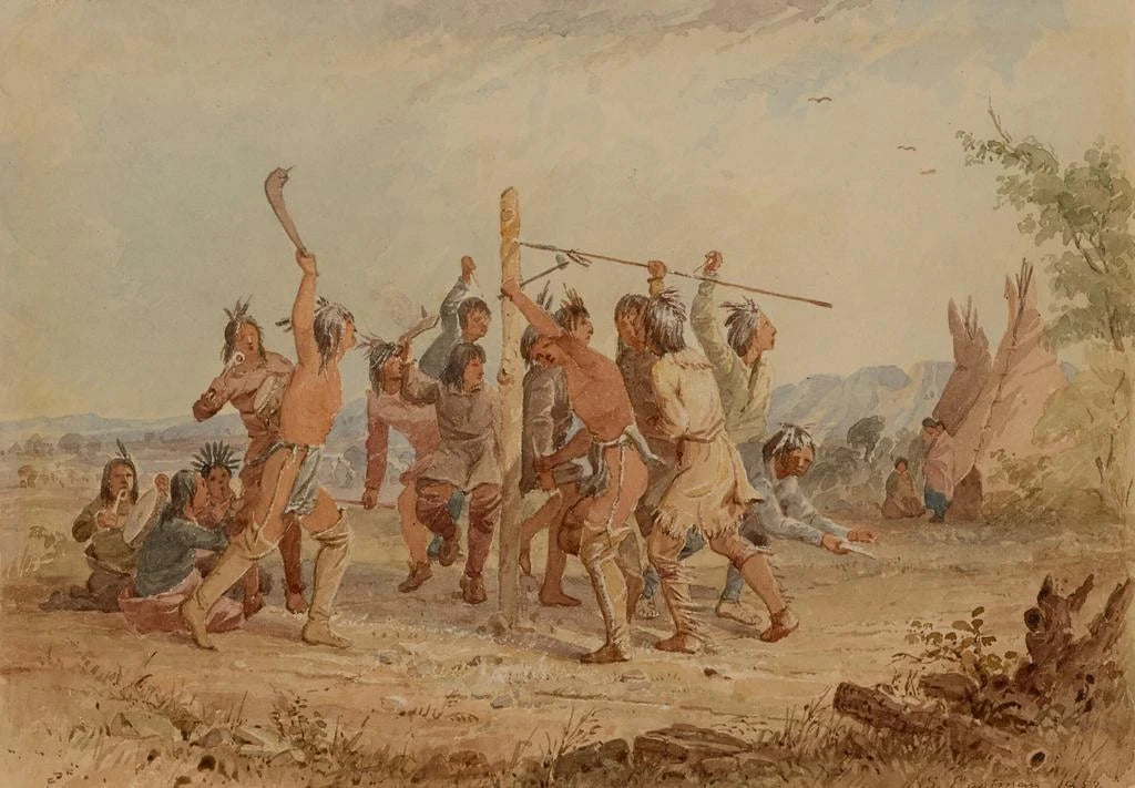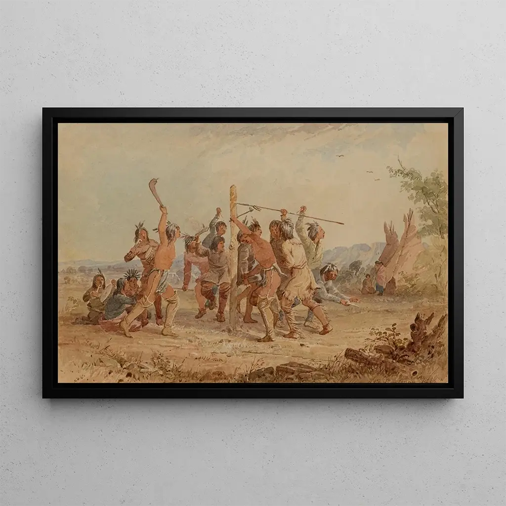 Seth Eastman, urodzony w 1808 roku, jest amerykańskim artystą znanym z przedstawień życia i pejzaży rdzennych mieszkańców. Działający w okresie, gdy ekspansja na zachód redefiniowała kulturowy pejzaż Ameryki, Eastman był pod wpływem swoich podróży i interakcji z plemionami indiańskimi. Jego styl, osadzony w realizmie, świadczy o chęci dokumentowania codziennego życia i tradycji ludów, które spotkał. Jego druk artystyczny "Uderzenie w słup" wpisuje się w tę koncepcję, oferując cenny wgląd w epokę i kultury, które starał się przedstawić.