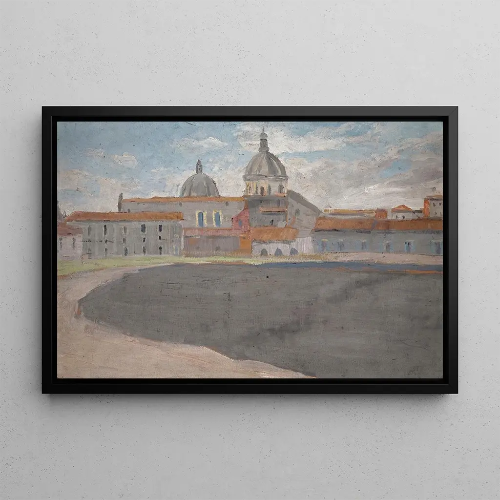 Szwajcarski malarz Ernst Schiess z XIX wieku jest znany ze swoich pejzaży i przedstawień historycznych budowli. Jego twórczość wpisuje się w nurt romantyzmu, gdzie emocje i natura odgrywają główną rolę. Pod wpływem podróży po Europie, Schiess potrafił wprowadzić elementy różnych kultur do swoich dzieł. Katedra Włoska z Kopułą świadczy o jego zainteresowaniu architekturą i pragnieniu uchwycenia piękna ikonicznych miejsc. Jego prace odzwierciedlają epokę, w której sztuka i architektura się przenikały, oferując poetycką wizję zabytków.