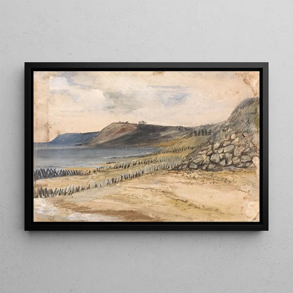 Obraz "Baie de Sheppey, Sheerness, Anglia" autorstwa Edwarda W. Fitcha uchwyca dzikie piękno angielskiego wybrzeża. Żywe kolory nieba łączą się z srebrzystymi refleksami wody, tworząc uderzającą harmonię wizualną. Kompozycja jest bogata w szczegóły, od białych żagli łodzi po puszyste chmury unoszące się nad zatoką. Fitch używa techniki malarstwa olejnego, która ożywia tę scenę morską, wywołując atmosferę spokoju i wolności. Ten druk artystyczny zaprasza do ucieczki, przenosząc widza na spokojne wybrzeża Anglii.