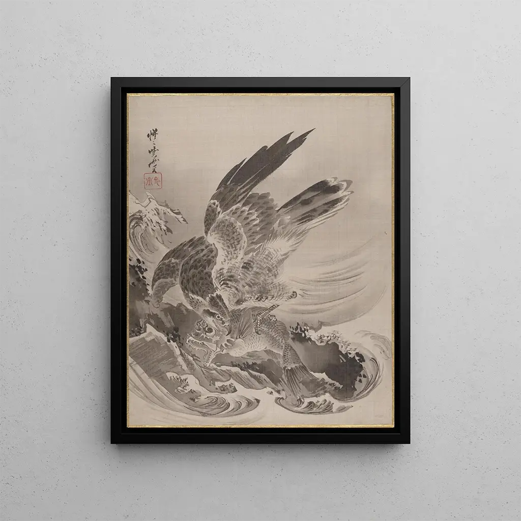 Orzeł atakujący rybę - Kawanabe Kyōsai