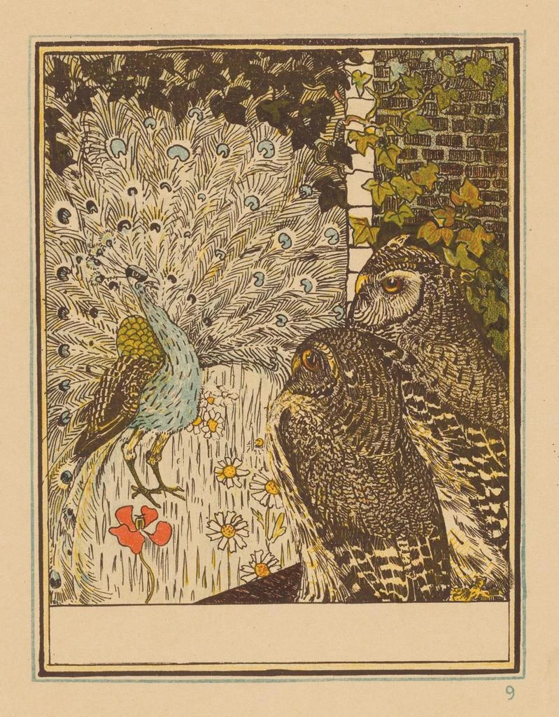Pokazujący pawia i dwa sowy - Theo van Hoytema