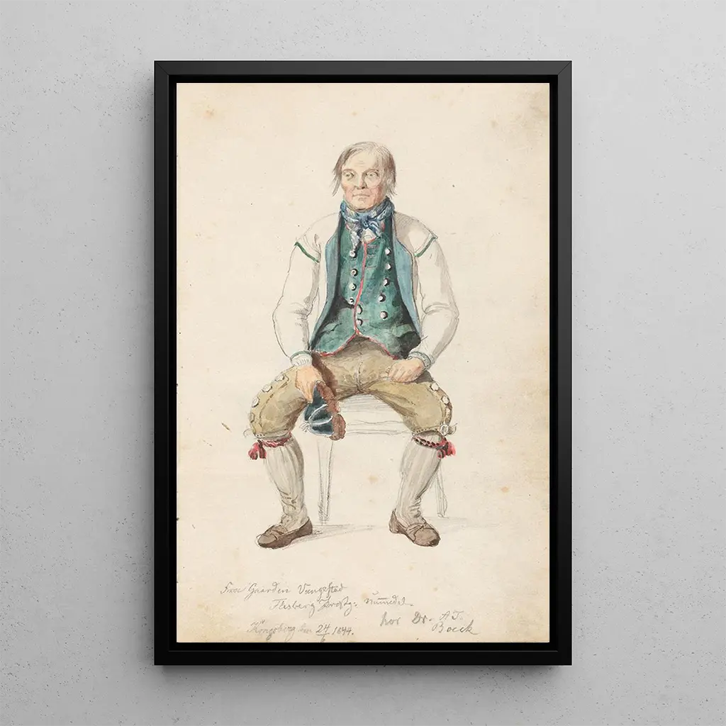 Adolph Tidemand, norweski malarz XIX wieku, jest znany z dzieł celebrujących kulturę i krajobrazy swojego kraju rodzinnego. Pod wpływem ruchu romantycznego, Tidemand potrafił uchwycić istotę norweskiego życia wiejskiego poprzez sceny pełne nostalgii i piękna. Jego kariera, naznaczona podróżami po Europie, pozwoliła mu czerpać z różnych wpływów artystycznych, pozostając wiernym swoim korzeniom. Jego obrazy, jak ta reprodukcja Niri Knutson Vangestad Flesberg, świadczą o jego zaangażowaniu w przedstawianie codziennego życia i tradycji swojej epoki, czyniąc go ikoną sztuki skandynawskiej.