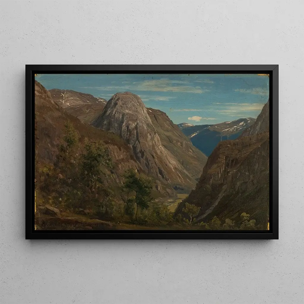 Amaldus Nielsen, norweski malarz XIX wieku, jest znany z pejzaży celebrujących dzikie piękno Norwegii. Działając w nurcie romantycznym, Nielsen był pod wpływem wielkich mistrzów europejskich, jednocześnie rozwijając własny styl, zakorzeniony w miłości do nordyckiej natury. Jego dzieła odzwierciedlają głęboki szacunek dla norweskiego krajobrazu, a on sam potrafił mistrzowsko uchwycić światło i atmosferę. Nielsen stał się ikoną norweskiego artystycznego dziedzictwa, a jego obrazy nadal inspirują tych, którzy pragną docenić naturalne piękno swojego kraju.