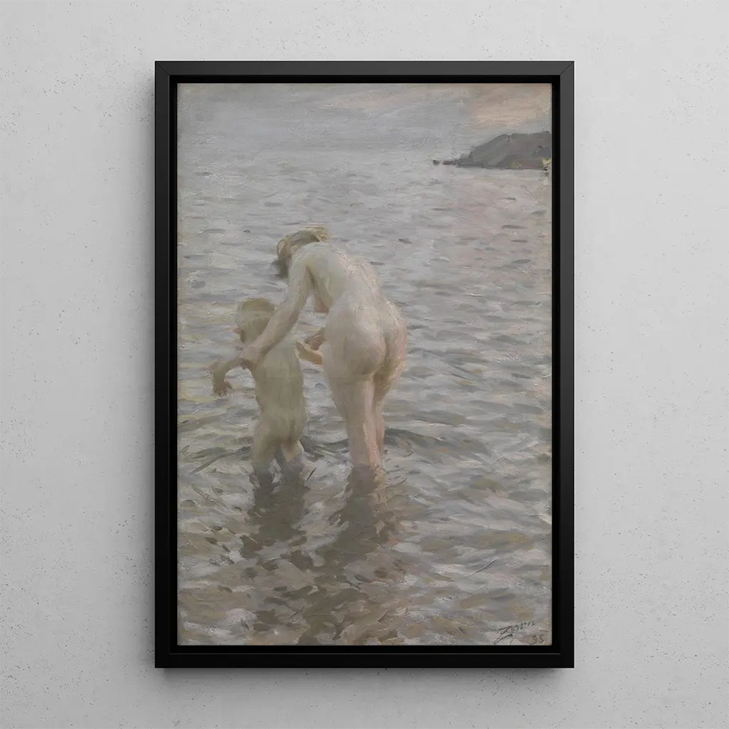 Avec mère : une tendresse intemporelle Dans l'œuvre "Avec mère", Anders Zorn capture un moment de douceur et d'intimité entre une mère et son enfant. La composition, centrée sur les figures humaines, utilise des couleurs chaudes et naturelles qui évoquent la chaleur d'un foyer. Les coups de pinceau fluides et la lumière douce qui baigne la scène créent une atmosphère sereine et apaisante. Zorn, maître du portrait, parvient à transmettre une émotion palpable, rendant cette reproduction du tableau "Avec mère" non seulement un hommage à la maternité, mais aussi une invitation à la contemplation des liens familiaux. Anders Zorn : un virtuose du portrait au tournant du siècle Anders Zorn, peintre suédois actif à la fin du XIXe et au début du XXe siècle, est reconnu pour sa capacité à capturer la lumière et la texture dans ses œuvres. Influencé par les impressionnistes français, il a su développer un style unique qui allie réalisme et impressionnisme. Zorn a également été un portraitiste recherché, peignant des figures de la royauté et des personnalités influentes de son époque. Son travail, qui reflète une profonde compréhension de l'humanité, a marqué l'histoire de l'art et continue d'inspirer les artistes contemporains. La reproduction de "Avec mère" témoigne de son talent exceptionnel et de son héritage artistique. Une acquisition décorative aux multiples atouts La reproduction du tableau "Avec mère" est une pièce décorative qui s'intègre harmonieusement dans divers espaces, que ce soit dans un salon, un bureau ou une chambre. Sa qualité d'impression et sa fidélité à l'œuvre originale garantissent un rendu esthétique qui attire le regard et suscite l'émotion. En choisissant cette toile, vous ajoutez une touche de tendresse et de chaleur à votre intérieur, tout en célébrant la beauté des relations familiales. Cette œuvre est non seulement un choix décoratif, mais aussi un véritable témoignage de l'art intemporel d'Anders Zorn.