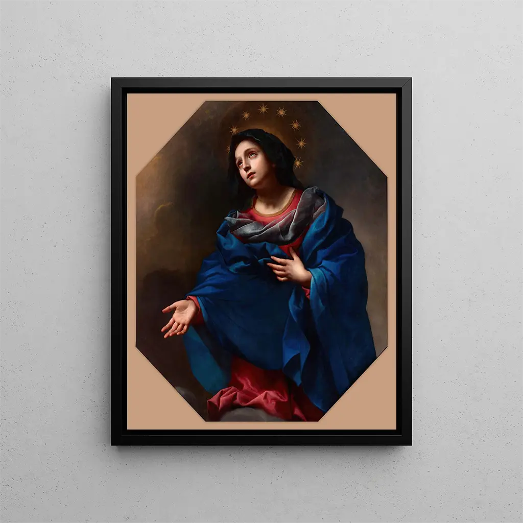 Reprodukcja Madonny w chwale - Carlo Dolci – Wciągające wprowadzenie W fascynującym świecie sztuki barokowej, "Madonna w chwale" Carlo Dolci wyróżnia się jako ikoniczne dzieło, przyciągając wzrok i poruszając dusze. Ta przedstawienie Matki Boskiej, otoczonej boskim blaskiem, wykracza poza zwykły obraz, stając się prawdziwym doświadczeniem duchowym. Artysta, dzięki swojemu niezmiernemu talentowi, potrafi uchwycić istotę wiary i oddania, zapraszając widza do kontemplacji piękna sacrum. Dzięki temu druk artystyczny, magia oryginalnego dzieła ujawnia się, pozwalając każdemu zanurzyć się w świecie, gdzie sztuka i duchowość splatają się harmonijnie. Styl i wyjątkowość dzieła "Madonna w chwale" to hołd dla kobiecego piękna i matczynej delikatności. Dolci, mistrz detalu i koloru, używa subtelnej palety, aby stworzyć odcienie zdające się drgać pod światłem. Kompozycja, starannie zaaranżowana, podkreśla Matkę Boską, której promienna twarz wyraża nieskończony spokój. Drapowania jej szaty, subtelnie opracowane, przywołują lekkość eteryczną, podczas gdy tło, pokryte jasnymi chmurami, wzmacnia to wrażenie transcendencji. Każdy element dzieła został zaprojektowany, by wywołać głębokie emocje, duchowe połączenie z boskością. Technika Dolci, łącząca precyzję i wrażliwość, nadaje temu dziełu wyjątkowość, która wyróżnia je wśród sztuki barokowej. Artysta i jego wpływ Carlo Dolci, urodzony we Florencji w XVII wieku, to artysta, który zyskał uznanie dzięki swojemu unikalnemu stylowi i zdolności łączenia piękna z duchowością. Wykształcony w pracowni wielkich mistrzów, szybko rozwijał własne podejście, charakteryzujące się staranną dbałością o szczegóły i wyrafinowaną paletą barw. Jego wpływ nie ogranicza się do jego epoki, ponieważ jego dzieła nadal inspirują wielu współczesnych artystów. Przez "Madonnę w chwale" Dolci ukazuje nie tylko swój wyjątkowy talent, ale także zdolność do dotarcia do ludzkiej duszy przez sztukę. Jego wizja artystyczna czyni go nieodłączną postacią wśród barokowych twórców, a jego dziedzictwo…