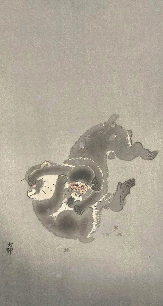 Druk artystyczny | Dwa małpy grające - Ohara Koson