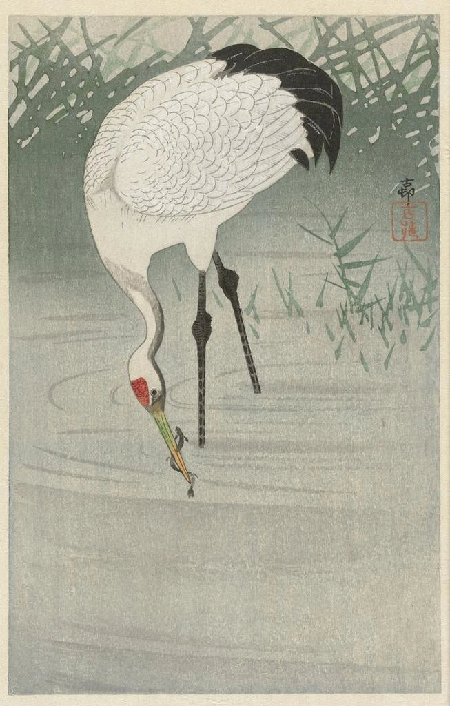 Druk artystyczny | Dźwig łowiący w płytkiej wodzie - Ohara Koson