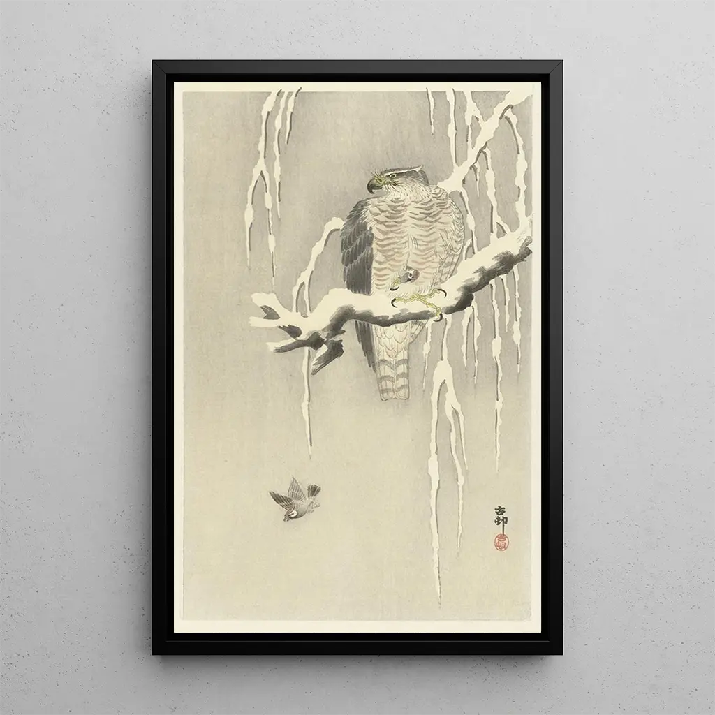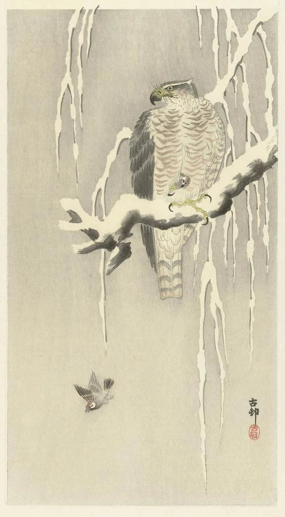 Druk artystyczny | Sokoł z uwięzionym wróblem - Ohara Koson