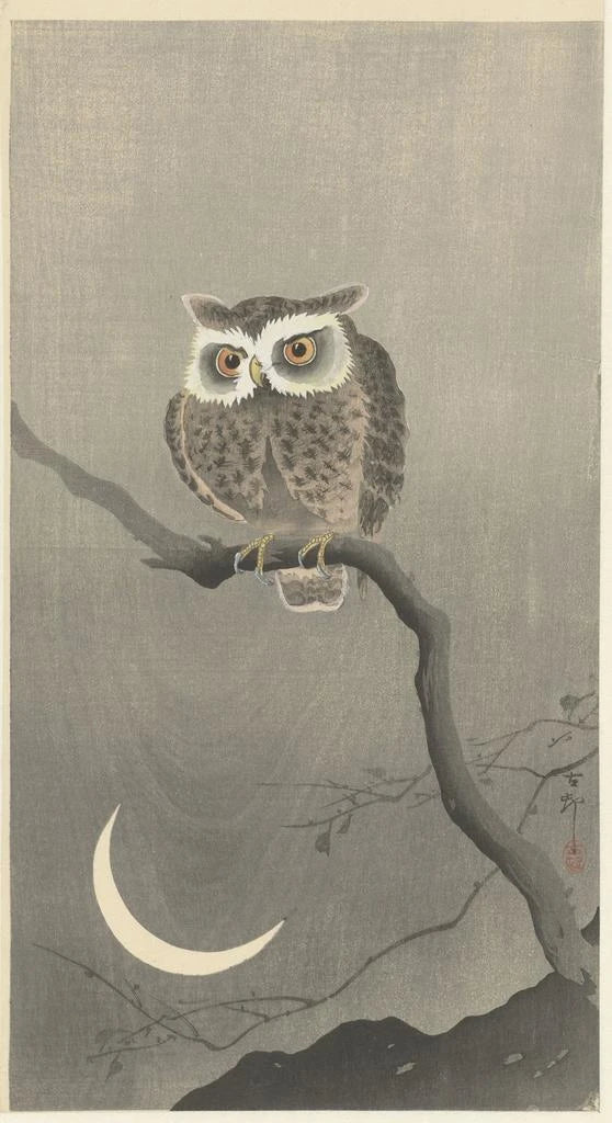 Druk artystyczny | Hibou moyen-duc sur une branche d'arbre nue - Ohara Koson