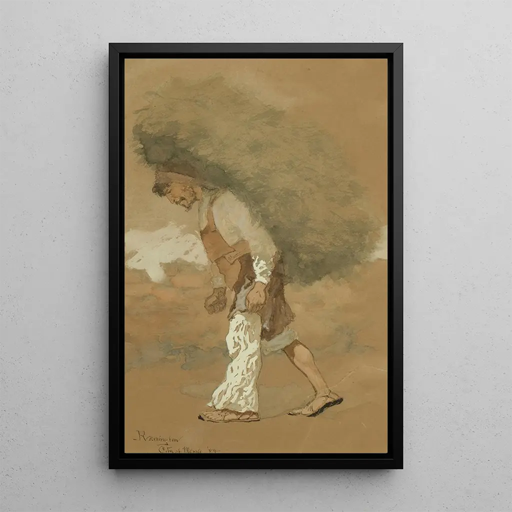 Frederic Remington, urodzony w 1861 roku, jest jednym z najbardziej ikonicznych artystów amerykańskiego Zachodu. Pod wpływem opowieści o kowbojach i legend o podbojach Zachodu, potrafił przekazać życie pionierów poprzez swoje dzieła. Remington rozwijał się w czasach, gdy amerykańska sztuka dążyła do zdefiniowania siebie, a jego styl, łączący realizm z pewną poezją, odcisnął piętno na jego epoce. Jego obrazy i rzeźby, często inspirowane własnymi podróżami na Zachód, świadczą o głębokim podziwie dla kultury i pejzaży amerykańskich. Druk artystyczny Transportu paszy doskonale ilustruje jego talent i zaangażowanie w tę tematykę.