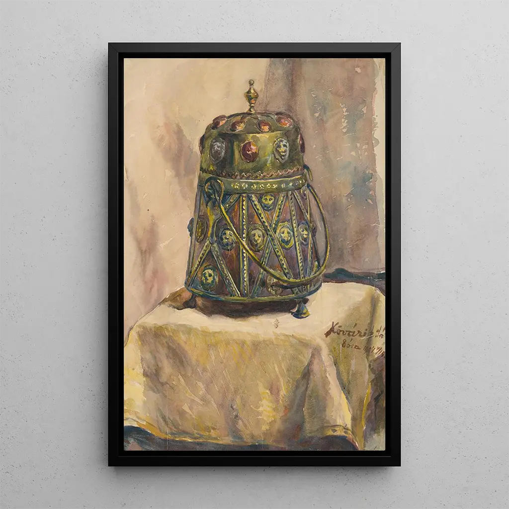 Studium dekoracyjnego metalowego naczynia: hołd dla rzemiosła Studium dekoracyjnego metalowego naczynia Konstantina Korowina to fascynujące dzieło, które celebruje piękno codziennych przedmiotów. Obraz przedstawia bogato zdobione naczynie, którego metaliczne refleksy i drobne detale są oddane z wyjątkową mistrzowskością. Niuanse światła i cienia ożywiają przedmiot, sprawiając, że niemal błyszczy w oczach widza. To dzieło, jednocześnie realistyczne i poetyckie, zachęca do uważnej kontemplacji, ukazując delikatność rzemiosła i bogactwo tekstur. Konstantin Korowin: wirtuoz koloru i światła Plastyczny artysta, Konstantin Korowin, potrafił wybić się jako ważna postać w sztuce rosyjskiej na przełomie XIX i XX wieku. Pod wpływem impresjonistycznych nurtów, rozwinął unikalny styl łączący realistyczną reprezentację z bardziej swobodnym i ekspresyjnym podejściem. Jego studia, takie jak studium metalowego naczynia, świadczą o jego zainteresowaniu codziennymi przedmiotami i talencie do uchwycenia światła i koloru. Korowin odegrał również kluczową rolę w modernizacji sztuki rosyjskiej, torując drogę nowym formom wyrazu artystycznego. Dekoracyjny nabytek o wielu zaletach Druk artystyczny tego studium dekoracyjnego metalowego naczynia to cenny dodatek do każdej kolekcji sztuki. Niezależnie od tego, czy ma ozdobić salon, biuro czy sypialnię, ten obraz wnosi odrobinę oryginalności i elegancji. Jakość reprodukcji zapewnia wierne oddanie szczegółów i kolorów oryginalnego dzieła, umożliwiając codzienne cieszenie się jego estetycznym urokiem. Wybierając ten obraz, wprowadzasz do swojego wnętrza nie tylko dzieło sztuki, ale także kawałek historii sztuki, który z pewnością zachwyci Twoich gości.