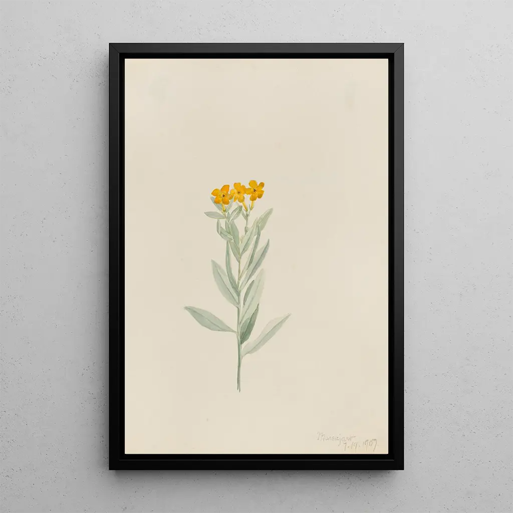 Druk artystyczny Lithospermum canescens, wykonany przez Mary Vaux Walcott, przenosi nas w świat kwiatów pełen spokoju. To dzieło, jednocześnie delikatne i pełne życia, oddaje piękno kwiatów z niezwykłą precyzją. Odmiany żółci i zieleni harmonijnie się ze sobą łączą, przywołując na myśl łagodność wiosennego poranka. Technika akwareli, stosowana przez artystkę, pozwala na tworzenie subtelnych gradientów, które ożywiają każdy płatek. Ogólna atmosfera obrazu zachęca do kontemplacji, jakby każdy kwiat opowiadał historię wzrostu i odporności.