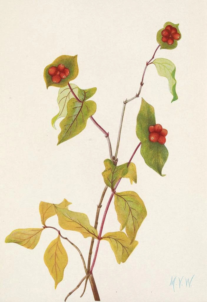 Druk artystyczny | Owoc dzikiego wiciokrzewu Douglas Lonicera glaucescens - Mary Vaux Walcott