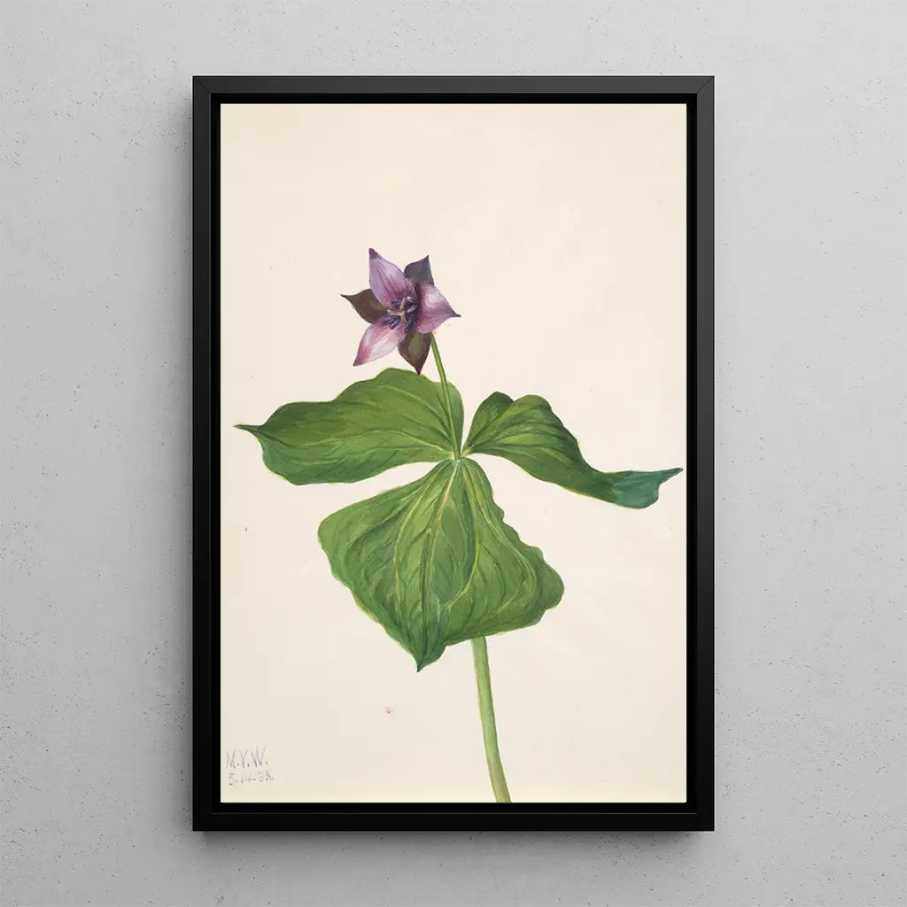 Obraz Trille dressé Trillium erectum autorstwa Mary Vaux Walcott jest prawdziwym świętem flory północnoamerykańskiej. Dzięki delikatnym odcieniom zieleni i bieli, ta praca nawiązuje do świeżości wiosennych lasów. Kompozycja podkreśla majestat rośliny, jej delikatne płatki otwierające się ku niebu, podczas gdy rozmyte tło sugeruje bujne naturalne otoczenie. Precyzyjna technika akwareli pozwala uchwycić przezroczystość liści i miękkość cieni, tworząc spokojną i kontemplacyjną atmosferę. Każdy szczegół jest starannie oddany, zachęcając widza do zanurzenia się w efemerycznej piękności natury.