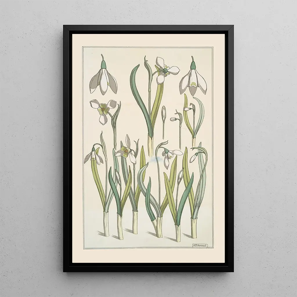 La reproduction Perce-neige de Maurice Pillard Verneuil évoque la douceur des premiers jours de printemps. Avec ses teintes délicates de blanc et de vert, cette œuvre capture la beauté fragile des fleurs émergeant de la neige fondante. La technique de l’artiste, mêlant aquarelle et dessin, crée une atmosphère légère et aérienne, invitant à la contemplation. Les détails minutieux des pétales et des feuilles, associés à un fond flou, renforcent l’impression de légèreté et de renouveau, faisant de cette toile un véritable hymne à la nature.