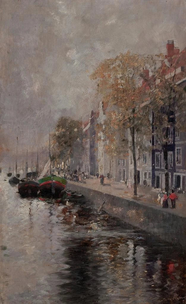 Friedrich Stahl, aktywny w XIX wieku, jest znany ze swojego talentu do przedstawiania pejzaży miejskich z unikalną wrażliwością. Pod wpływem romantyzmu, potrafił uchwycić piękno europejskich miast, zwłaszcza Amsterdamu. Jego dzieła wyróżniają się staranną dbałością o detale architektoniczne i światło, co nadaje im niemal poetycki wymiar. Poprzez swoje obrazy, Stahl zaprasza widza do ponownego odkrywania znanych miejsc z nowej perspektywy, czyniąc go kluczowym artystą w rozwoju pejzażu miejskiego w tamtym okresie.