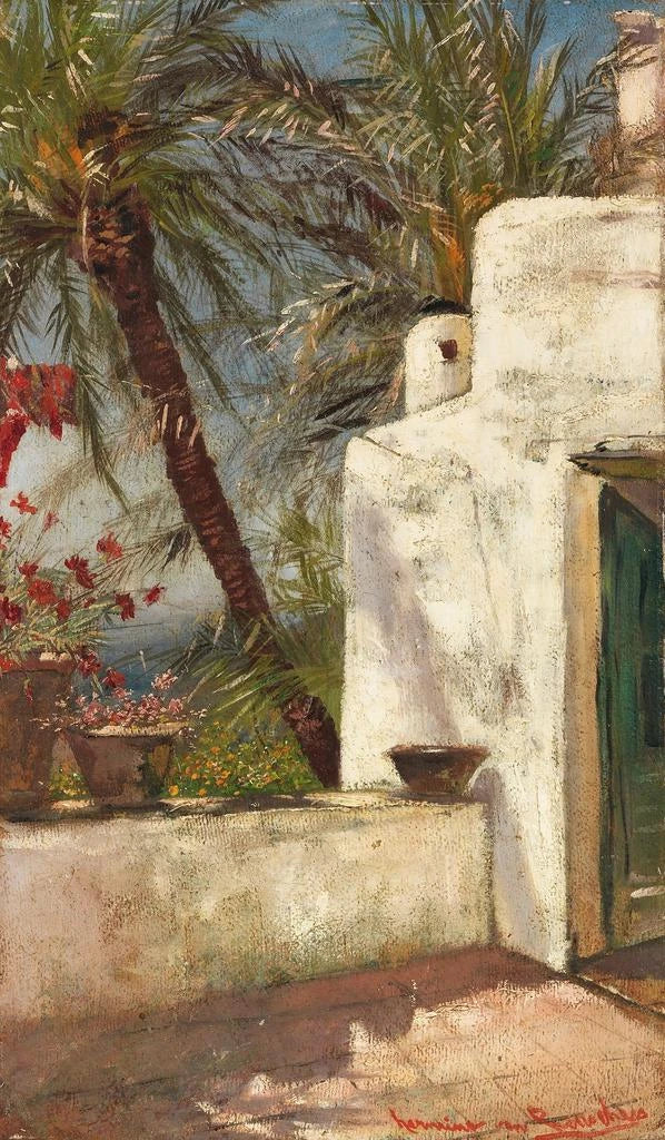 Druk artystyczny | Taras z palmami w Capri - Hermione von Preuschen
