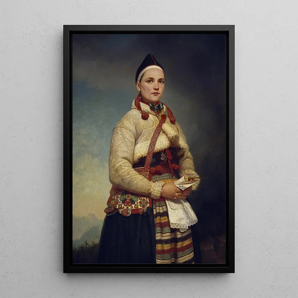 Druk artystyczny Fille de Dalarna odzwierciedla ponadczasowe piękno młodej kobiety ubranej w tradycyjne szwedzkie stroje. Żywe kolory i delikatne wzory na płótnie uchwycają istotę kultury skandynawskiej, podkreślając jednocześnie grację i godność bohaterki. Gottfrid Virgin, dzięki swojej biegłości w niuansach i szczegółach, potrafi przekazać atmosferę nostalgii i dumy. Każdy element kompozycji, od spokojnego tła po starannie przedstawione akcesoria, przyczynia się do uczynienia tego dzieła żywym hołdem dla folklorystycznego dziedzictwa Szwecji.