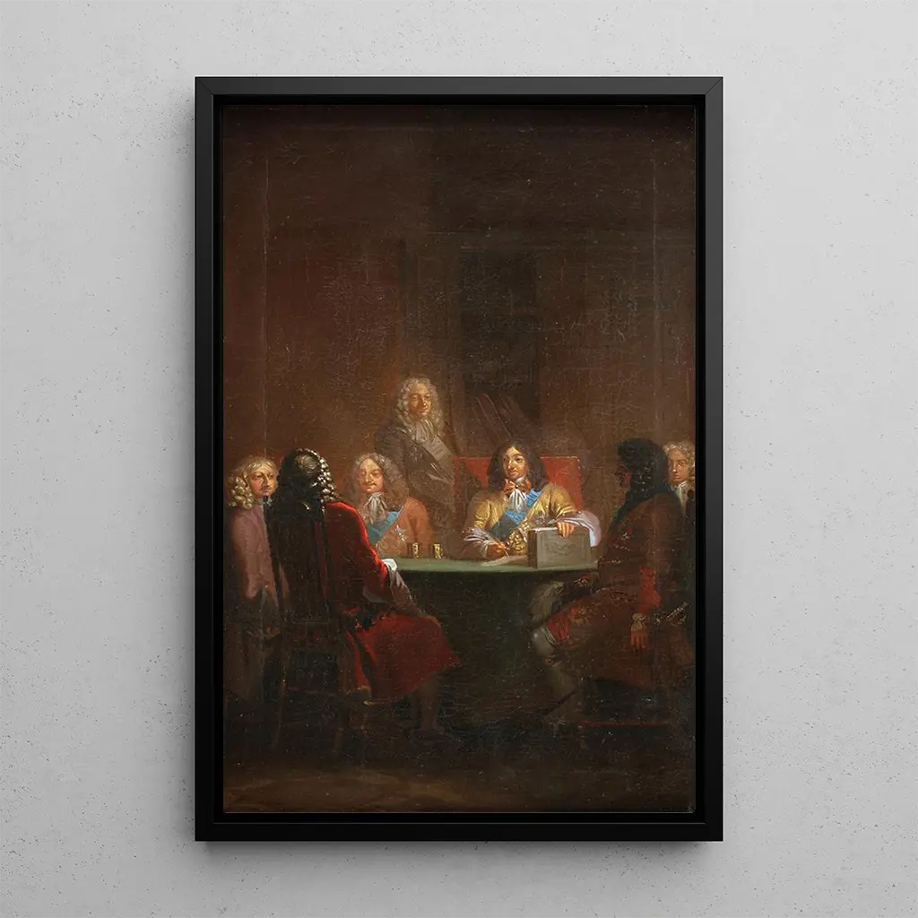 Christian V présente la loi danoise 1683 : un moment clé de l’histoire danoise La druk artystyczny de l'œuvre "Christian V présente la loi danoise 1683" de Nicolai Abildgaard nous plonge dans une scène historique vibrante. Les couleurs riches et les détails minutieux de cette toile évoquent une atmosphère solennelle, où chaque personnage semble porter le poids de l'histoire. L'artiste utilise une palette de teintes terreuses, accentuées par des touches de doré, pour donner vie à cette cérémonie marquante. La composition, soigneusement orchestrée, met en avant le roi Christian V, entouré de nobles et de conseillers, tous capturés dans un moment de gravité et de respect. Nicolai Abildgaard : un témoin de l'âge d'or danois Nicolai Abildgaard, peintre danois du XVIIIe siècle, est reconnu pour ses œuvres qui mêlent histoire et mythologie. Formé à l'Académie royale des beaux-arts de Copenhague, il a été influencé par le néoclassicisme, mouvement qui prône le retour aux valeurs esthétiques de l'Antiquité. Ses tableaux, souvent empreints d'une grande rigueur historique, témoignent de l'importance de la monarchie danoise à cette époque. Abildgaard a su capturer des moments significatifs de l'histoire danoise, comme en témoigne cette œuvre, qui illustre le rôle central du roi dans l'établissement des lois et des institutions du pays. Une acquisition décorative aux multiples atouts La druk artystyczny de "Christian V présente la loi danoise 1683" est une pièce maîtresse qui saura enrichir votre décoration intérieure. Que ce soit dans un salon, un bureau ou une chambre, ce tableau apporte une touche d'élégance et de culture. Sa qualité de druk artystyczny garantit une fidélité aux détails originaux, permettant d'apprécier pleinement l'œuvre d'Abildgaard. Avec son attrait esthétique indéniable, cette toile devient non seulement un élément décoratif, mais aussi une invitation à la réflexion sur l'histoire danoise et son héritage.