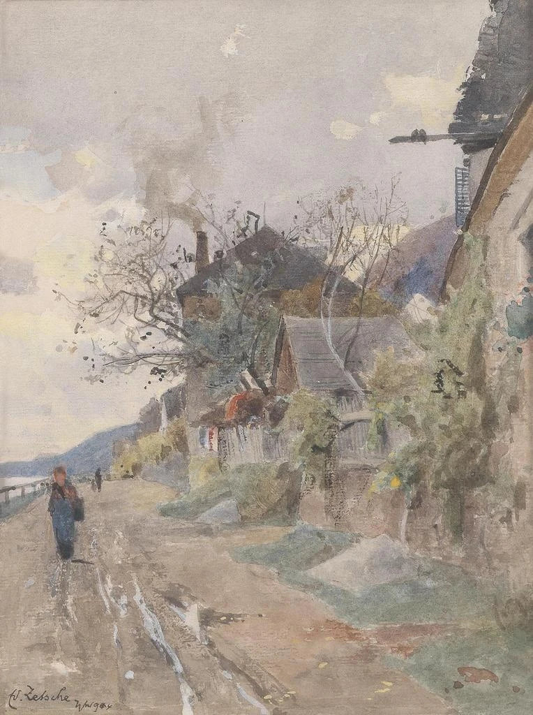 Eduard Zetsche, często mniej znany niż jego współcześni, pozostawił trwały ślad w świecie sztuki. Pochodzący z Niemiec, był pod wpływem wielkich mistrzów swojej epoki, jednocześnie rozwijając własny, unikalny styl. Jego pasja do natury i pragnienie uchwycenia jej piękna skłoniły go do eksploracji różnych pejzaży, ale