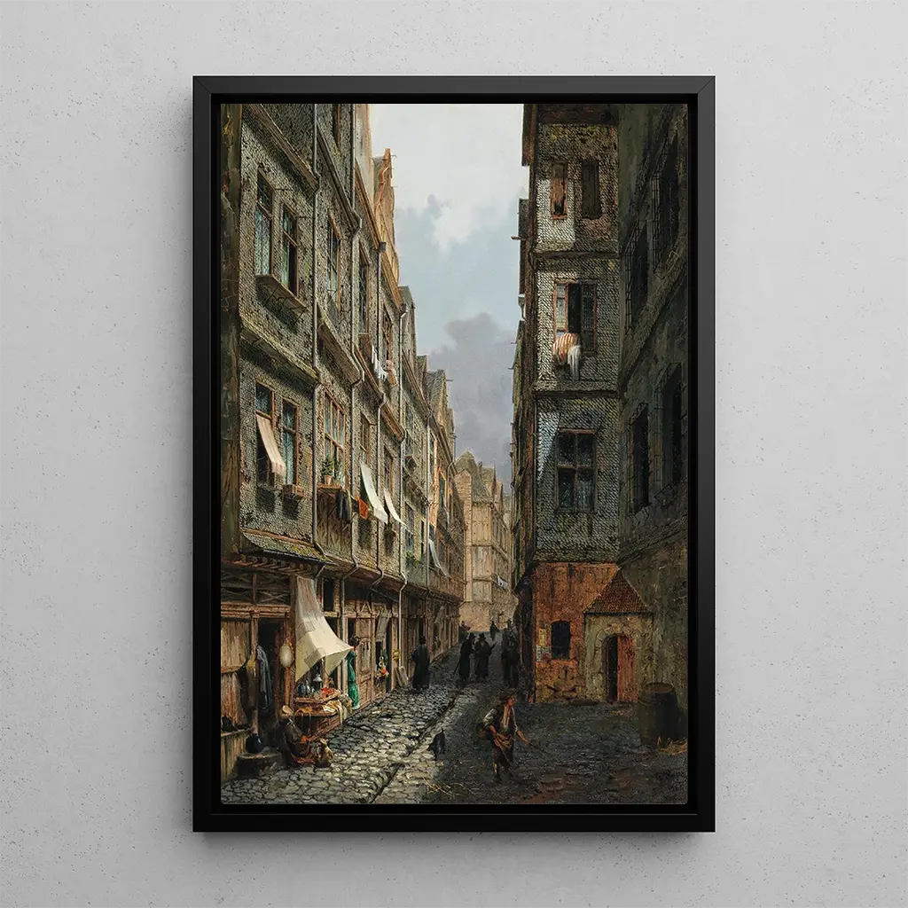 Gereon Pape, niemiecki artysta XX wieku, jest ceniony za swoje dzieła łączące realizm i impresjonizm. Pod wpływem wielkich mistrzów malarstwa, wypracował własny styl, charakteryzujący się szczególną dbałością o detale architektoniczne i światło. Aktywny w okresie burzliwych przemian w Europie, Pape często starał się uchwycić esencję historycznych miejsc, co potwierdza to dzieło. La Judengasse, symbol prosperującej społeczności żydowskiej, jest tematem, który rezonuje z niemiecką historią, a Pape, poprzez swoje dzieło, przyczynia się do zbiorowej pamięci tego okresu.